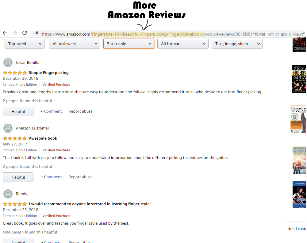 5 stars – “Excellent Book. Just what I was looking for, it has helped me so much in my quest to teach myself fingerstyle.”